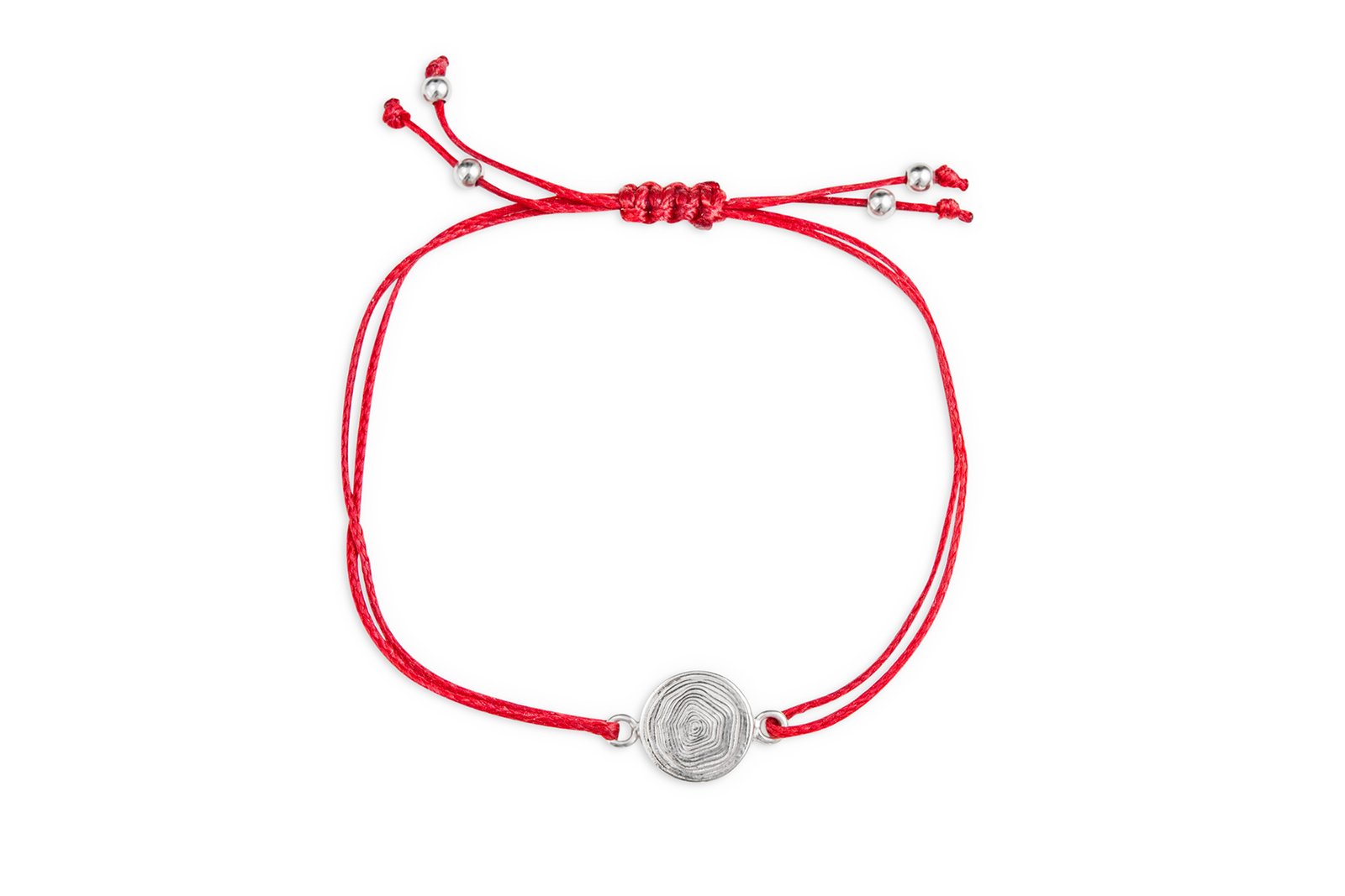 Sterling silver charm and silver round end beads on a macramé waxed cord.